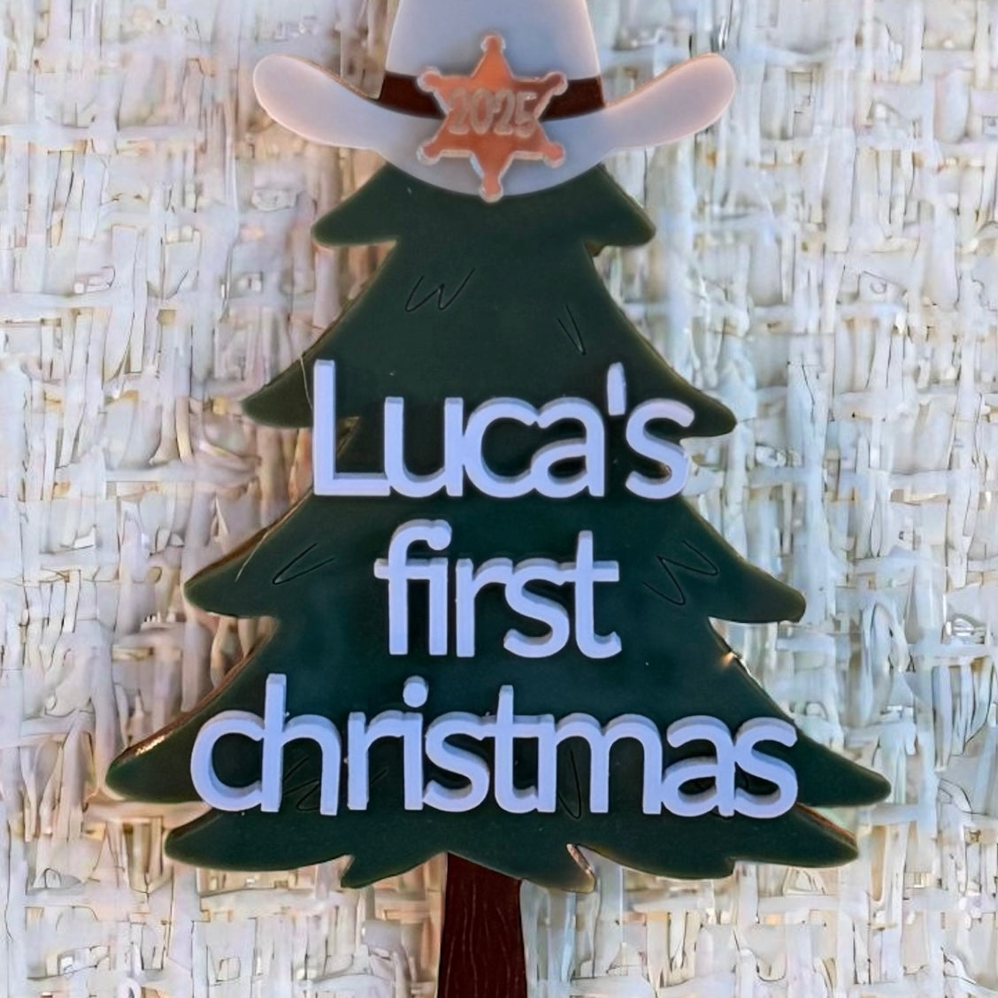 This charming ornament features a layered 3D Christmas tree design, complete with a festive cowboy hat topper and personalized with your child’s name and year. Crafted from premium wood and acrylic, it’s lightweight, shatter-resistant, and made to be cherished year after year.