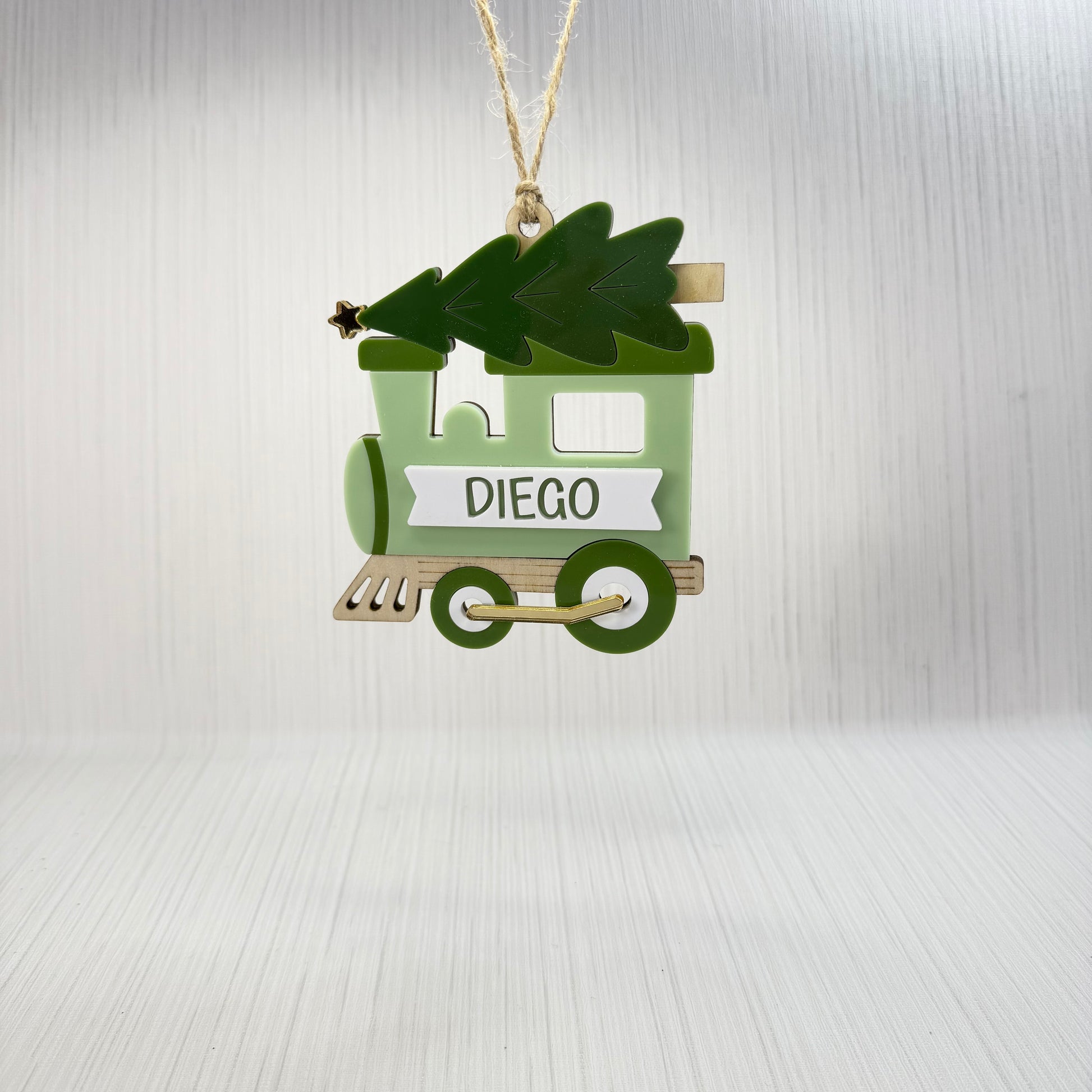 All aboard the holiday express! Our Personalized Christmas Tree Train Ornament is the perfect keepsake for little ones and families who love festive, whimsical holiday decor. Featuring a layered 3D wood and acrylic design, this charming train carries a Christmas tree and is customized with your child’s name for a magical, one-of-a-kind ornament.